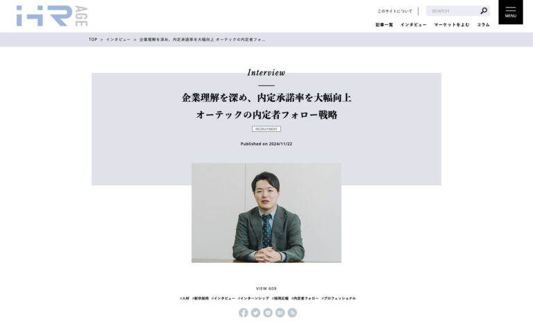 【株式会社ニュー・オータニ】HUMANAGE HR age撮影 投稿日 2025年4月28日 更新日 2025年7月9日 著者 graphos ジャンル オウンドメディア 社員との対話を増やして「入社後の姿」と「職場の楽しさ」を伝える。ニュー・オータニの採用戦略 | HR AGEHR AGEは、“本気の人事”の皆さまへ向けた情報プラットフォームです。最新調査、トレンド、インタビューなど、より良い採用活動に向けた情報をお届けします。hr-age.humanage.co.jp