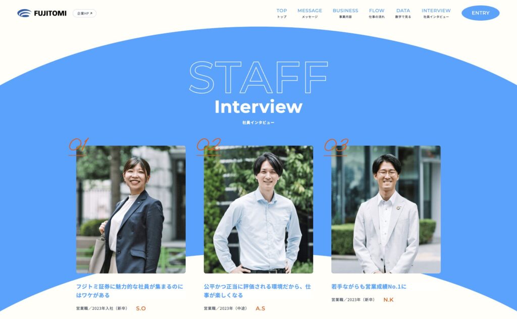 【フジトミ証券株式会社】 採用サイト撮影 投稿日 2025年7月14日 著者 graphos ジャンル 採用サイト スペシャル情報|フジトミ証券株式会社くりっく365・くりっく株365・商品先物取引などのデリバティブ取引に強いフジトミ証券株式会社。当社の新卒採用では、金融に興味のある方の採用に力を入れています。fukoku-jp.net